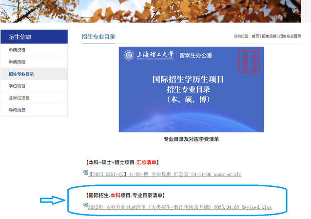 请下载当年的国际招生本科专业目录清单,清单中已明确标注不同本科专业的数、理、化单科考试要求;(https://iso.usst.edu.cn/9482/list.htm)