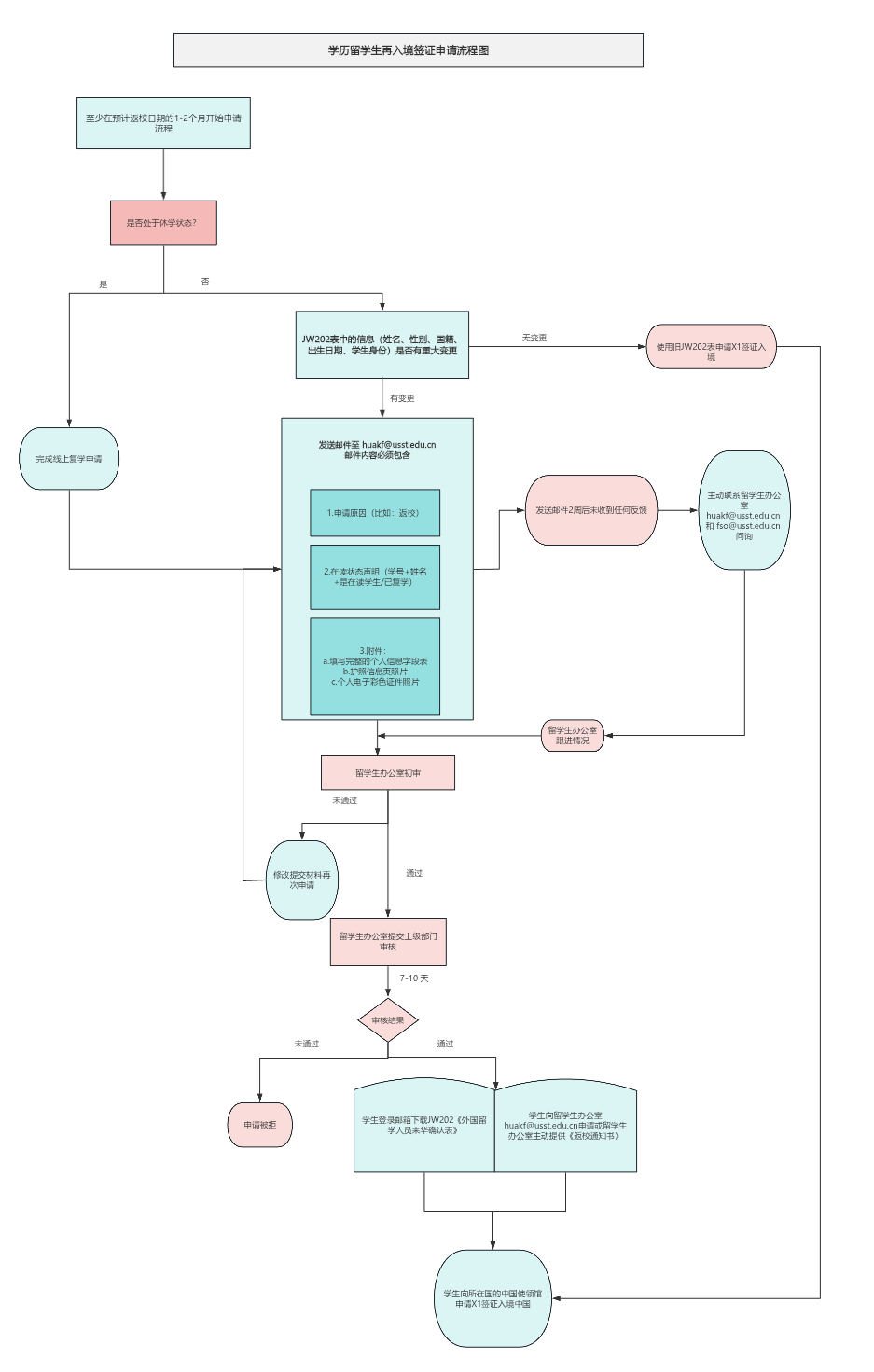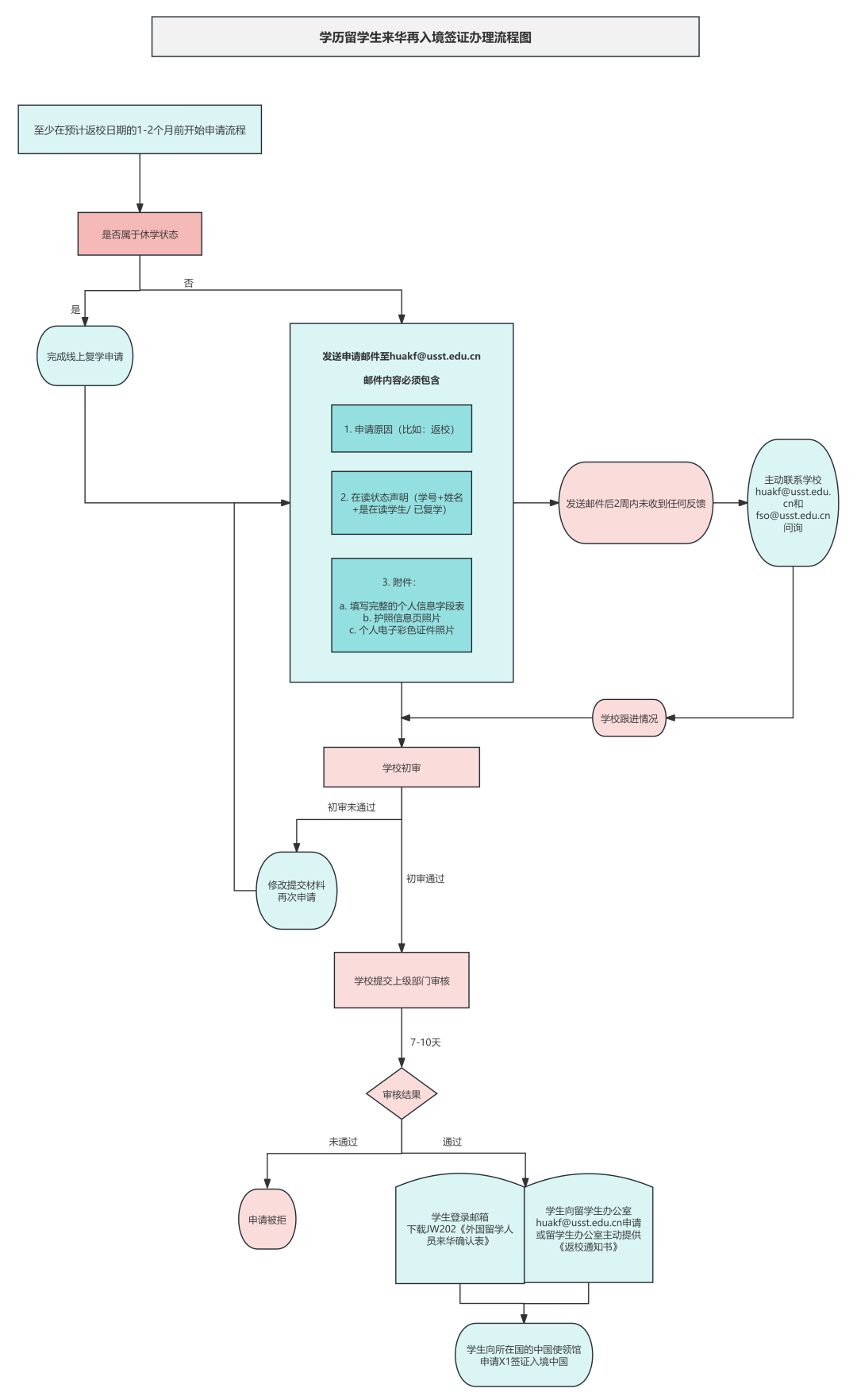 对于休学后复学或因其他情形需要再次申请入境签证返校的留学生,请发送邮件至huakf@usst.edu.cn,邮件中应写明: