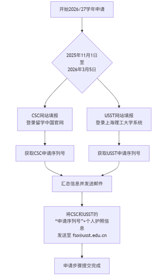 【发送申请序列号】发送CSC和USST网站在线填报的“申请序列号”+个人护照信息,至fso@usst.edu.cn;